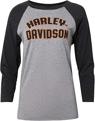 Harley-Davidson Womens Jersey 34-Sleeve Raglan T-Shirt, Black & Gray