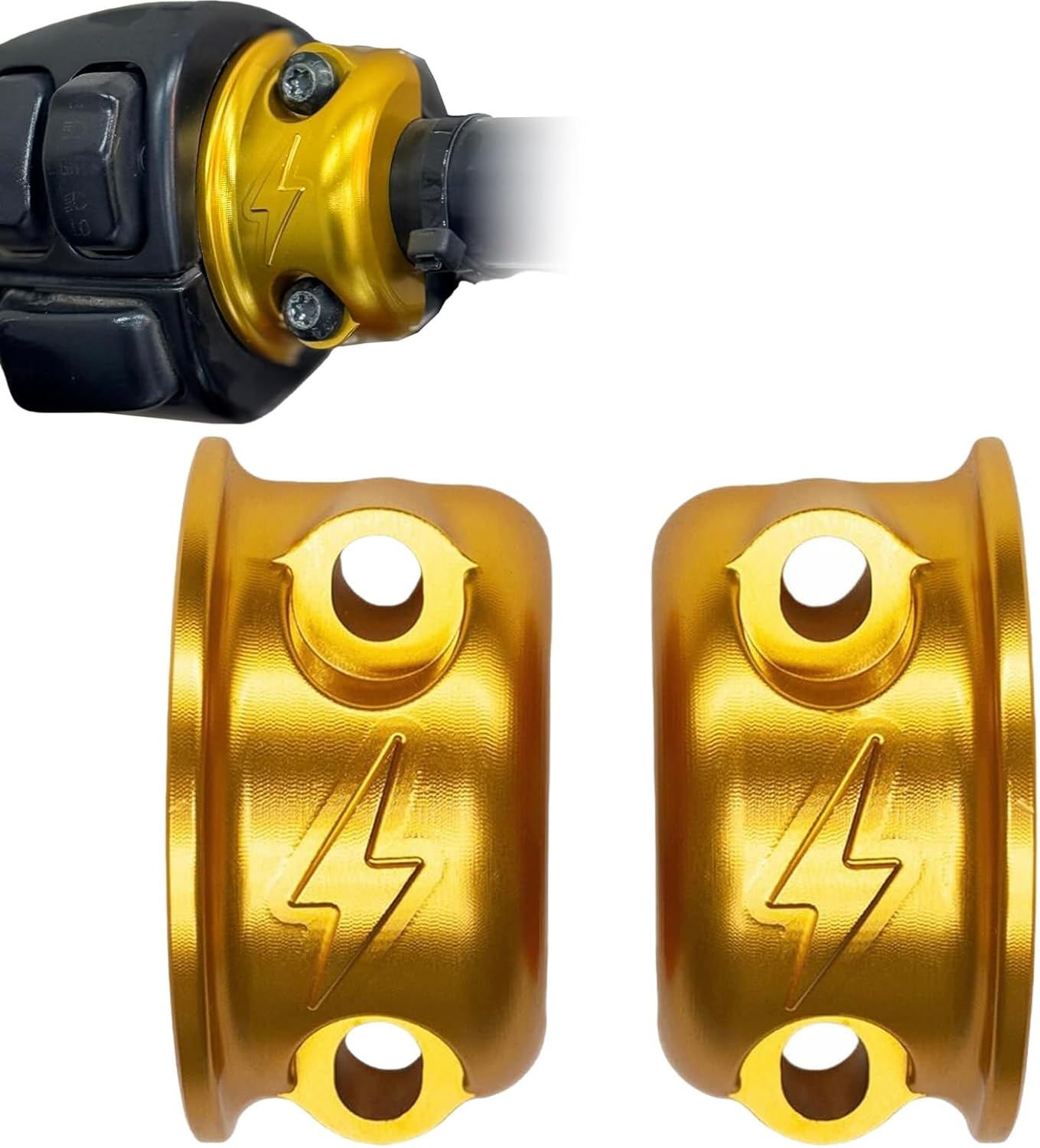 TDZ Lightning Logo Brake Clutch Perch Half Clamps for Harley Sportster, Softail, Dyna, Touring, Road Glide, Street Glide Gold