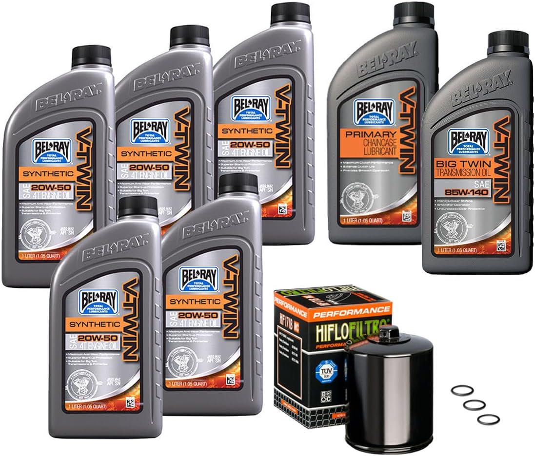 Bel-Ray Synthetic EngineTransmissionPrimary Oil Change For Harley Davidson Motorcycles, 2017-Up Harley M8, Black Oil Filter